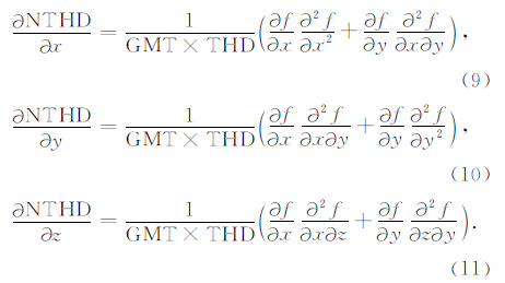 2 归一化总水平导数法总水平导数(Total Horizontal Derivative,THD)是进行地质体边界识别的常用方法,其表达式为: