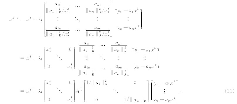 , a i为矩阵 A 的第i行,其中, x k=[xk1,xk2,…,xkn].则式(11)可表示为