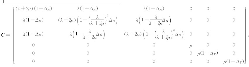 λ和μ是不含裂隙岩石的拉梅参数,ΔN和ΔT是Schoenberg线性滑动理论中的裂缝正向差值和切向差值,数值变化为0~1.