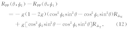 假定现有不同方位角φ1和φ2的叠前角度道集,当入射角θ小于30°时,可舍掉sin2θtan2θ,两者反射系数差值为