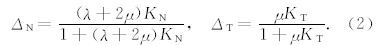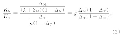 Hsu和Schoenberg(1993)研究了裂缝正向差值ΔN和切向差值ΔT与裂缝柔度系数KN和KT之间的关系: