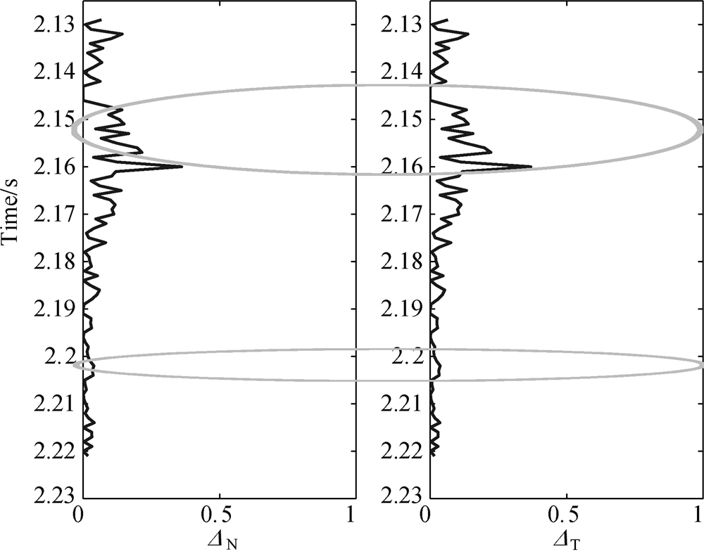 其中,RΔN=ΔN2-ΔN1;RΔT=ΔT2-ΔT1.ΔN1,ΔN2,ΔT1,ΔT2分别代表上下两层的正向差值和切向差值.
