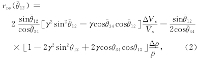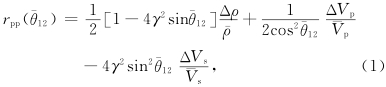 根据地震波传播理论,当纵波非垂直入射到一个波阻抗界面时,会产生反射纵波、反射转换横波、透射纵波、透射转换横波四种波. 反射系数和透射系数可以用Zoeppritz方程来精确表述(Zoeppritz,1919),在上下层介质的密度和速度差异不太大的情况下,可以将Zoeppritz方程近似简化为Aki-Richards公式(Aki和Richards,1980),纵波反射系数和转换波反射系数可分别表述为以下形式:
