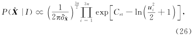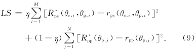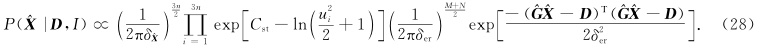 ,通过转换就能得到待求参数 X.但为了使结果更可靠,反演更稳定,利用贝叶斯方法将估计的先验信息加入反演公式中,以克服反演问题的不适定性. 2.3 基于贝叶斯理论的反演 基于贝叶斯理论,假设不同测量条件得到的测量结果的高斯分布是独立的,利用乘积准则得到似然函数的解为
