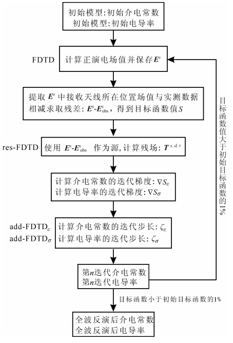 ![]() | 图 1 跨孔雷达全波反演计算流程 Fig. 1 Flow chart of cross-hole GPR full-wave inversion |