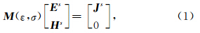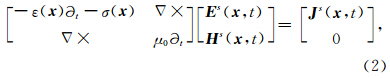 2 跨孔雷达全波反演理论推导 2.1 正演问题的积分表达形式为了更好地全面表达波场情况,麦克斯韦方程可以表示成如下形式(Meles et al., 2010):