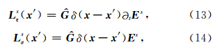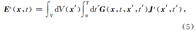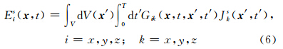 在2.1节中,定义了算子G ^ 对普通源Js的算法,为了给出GT清晰的说明,需要探讨G ^ 的细节.对 于源Js,接收点d,观测时间为τ,(6)式详细的给出了求解得到的电场的每个分量 (i=x,y,z k=x,y,z):