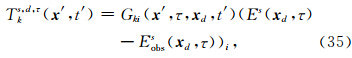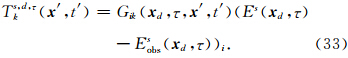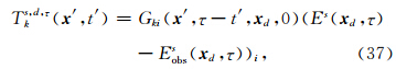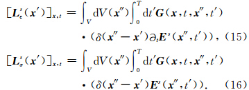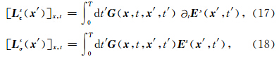 T=Gik(x ′,t′,x,t)是指定时空域产生全部空间和时间域的函数.现定义一个新的矢量函数T,作为T对残差(即“残场源”)[ΔEs]d,τ的作用: