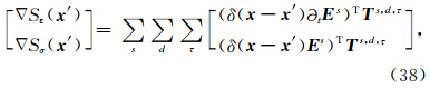 TRs.对 应的空间梯度分量由空间delta函数δ(x - x ′)表示.积分算子及其转置是通过其核函数的性质定义的,而线性算子及其转置拥有相同的核函数,唯一的区别为变量是积分还是相加(Tarantola,2005).