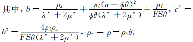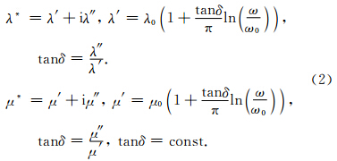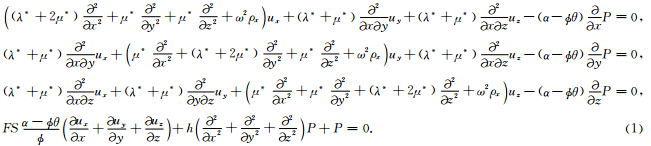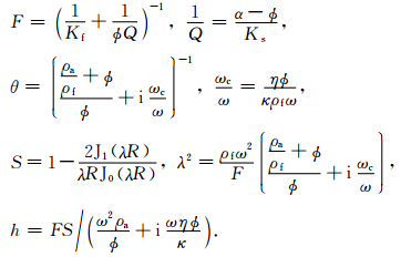 2 黏弹性BISQ模型Yang和Zhang等(2000,2002)在考虑固流耦合具有各向异性的条件下,推广了BISQ模型,获得了能同时处理Biot流和喷射流机制以及固-流耦合各向异性的一般化BISQ模型.考虑介质的黏弹性,在稳态条件下,根据黏弹性理论中的对应原理,在空间-频率域黏弹性各向同性介质中的BISQ方程具有如下形式(Yang et al., 2000):