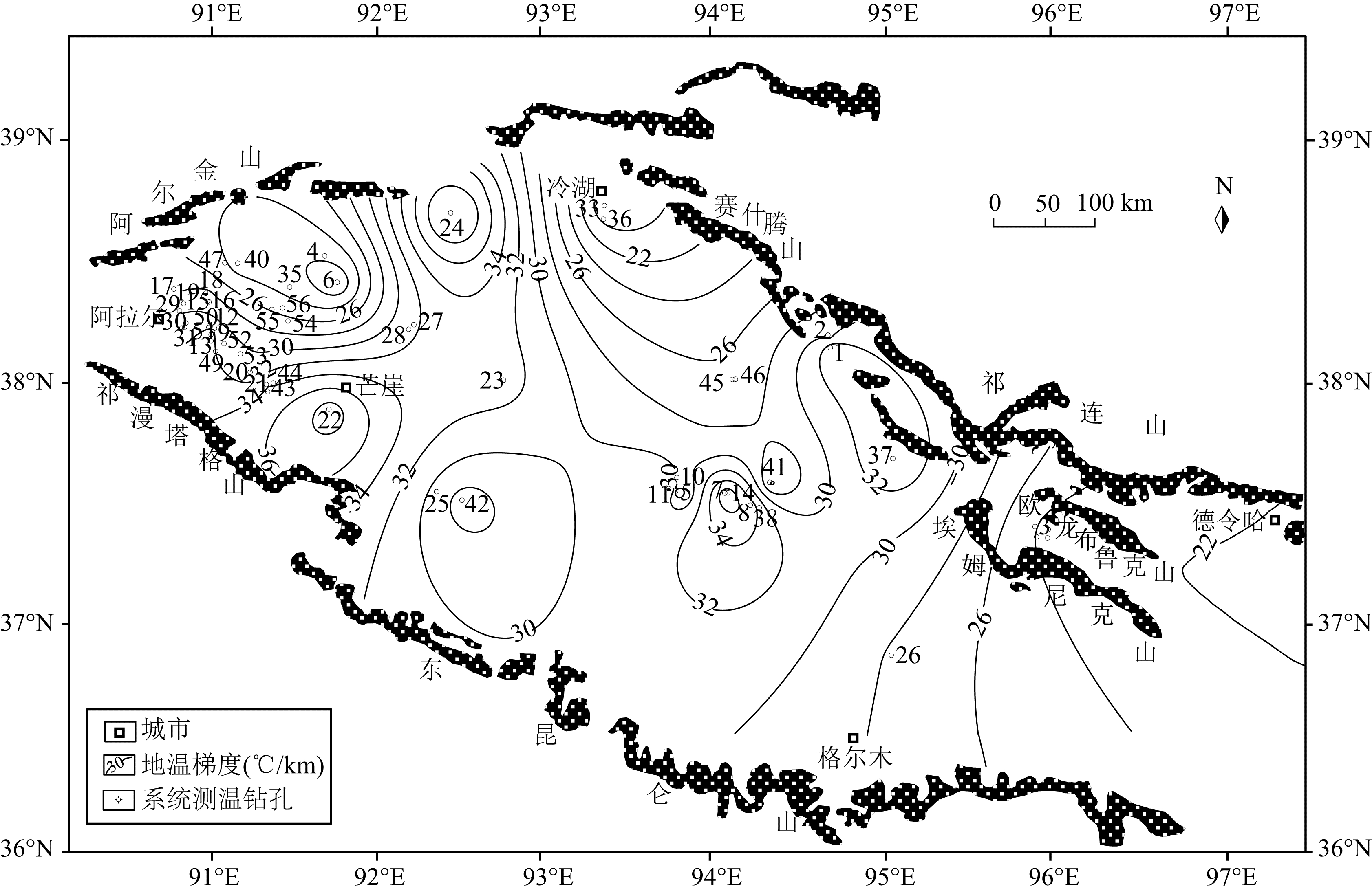 上述各类温度数据的精度各异,系统稳态测温资料和静井温度数据比较可靠,是笔者研究柴达木盆地现今地温场分布特征的主要依据.