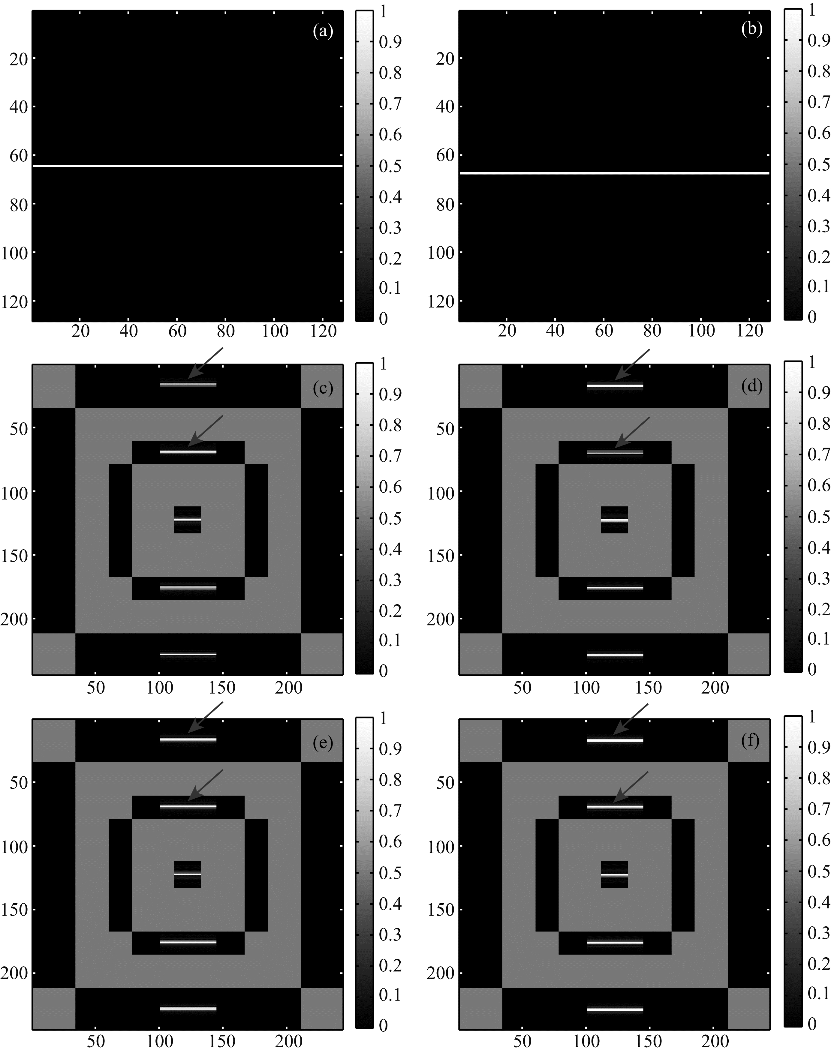 ![]() | 图 2 实曲波变换和复曲波变换时移敏感性对比图 (a) 原始图形; (b) 下移3个位置点后的图形; (c) 图形(a)对应的RCT系数; (d) 图形(b)对应的RCT系数; (e)图形(a)对应的CCT系数; (f) 图形(b)对应的CCT系数. Fig. 2 Time shift sensitivity contrast of RCT and CCT (a) Original data; (b) Data after 3 points downward shift; (c) RCT coefficient of figure (a); (d) RCT coefficient of figure (b); (e) CCT coefficient of figure (a); (f) CCT coefficient of figure (b). |