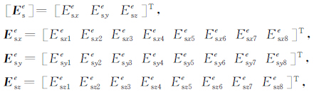 为单元内x、y、z方向的二次电场.将式(12)写成矩阵形式,有