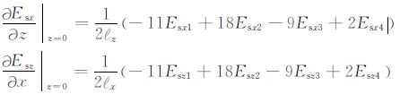 方程(5)是均匀半空间中水平电偶极子激发产生的一次电场,可用解析法求解.方程(6)是二次电场Es所满足的矢量波动方程,取外边界Γ足够大,使异常体产生的二次电场Es衰减到外边界处趋于0,可获得足够精确的第一类边界条件,构成三维地电模型CSEM二次电场的边值问题.