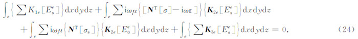 在单元e内,将(13)、(15)、(17)式的积分结果相加,再扩展成全部单元的相加,有