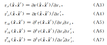 0到主散射射线附近点的矢量.公式(8)中变量在Klimeš(2012)的文章中有详细的解释,为了保持本文理论的完整性,我们把上述变量的物理意义表述在附录A中.