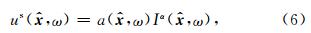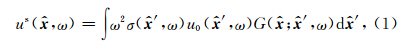 常密度声波方程中的一阶Born近似下散射波us的计算写成如下形式: