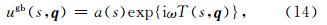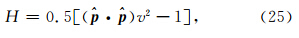 α在射线中心坐标系中沿射线方向的分量.用汉密尔顿常量H(Červený,2001)表示k3(q),可把(23)式所示的高斯波包初始振幅转换成如下形式: