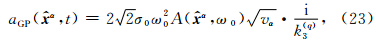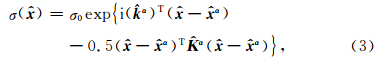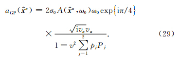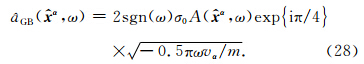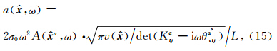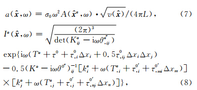 将散射体的Gabor函数表达式(3),背景波场与格林函数的零阶WKBJ近似(4)和(5)代入一阶Born近似下的散射波场积分公式(1)中,得到Gabor散射体的散射波积分形式(Klimeš, 2012)
