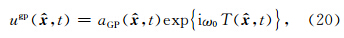 4 时间域的散射波计算方法——高斯波包第3节中讨论了Gabor散射体产生的散射波场在频率域用高斯束计算的过程.对所有频率的高斯束按频率积分即可得到Gabor散射体产生的散射波场在时间域的表达形式,得到时间域计算散射波场的方式——高斯波包.高斯波包计算散射波场写成振幅和复数相位的表达形式: