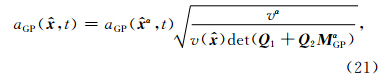 α,t)是高斯波包初始振幅,Q1和Q 2是公式(B4)所示动力学射线追踪传播矩阵的元素,MGPα是高斯波包相位函数在射线中心坐标系中q方向的二阶导数初值,详见(C12)式.高斯波包(20)式中振幅部分(21)式的计算可通过高斯束的频率积分得到,积分结果的振幅在散射点的表达式即为高斯波包的初始振幅,具体形式为