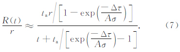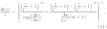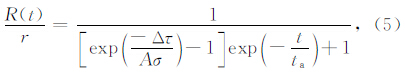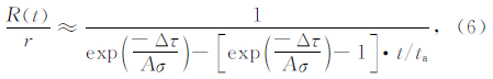 为剪应力变化率.根据公式(2)再结合断层失稳时间的表达式就可以得出该模型下主震后余震发生率R的解析表达式(Dieterich,1994):