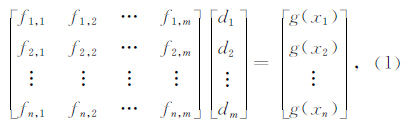 2 重力正演模型我们首先给出密度模型和观测系统:采用地表观测和接收数据,g(xi)为在第i个观测点的重力接收数据,dj为地下介质密度模型网格化后第j个网格的密度值(通常是未知的),如图 1所示.