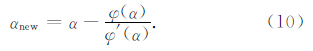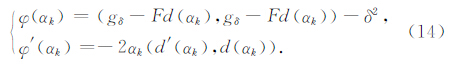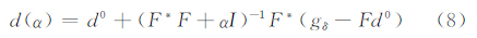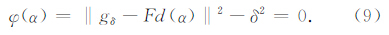利用偏差原理,公式(7)中α满足如下非线性方程(Wang and Xiao,2001):