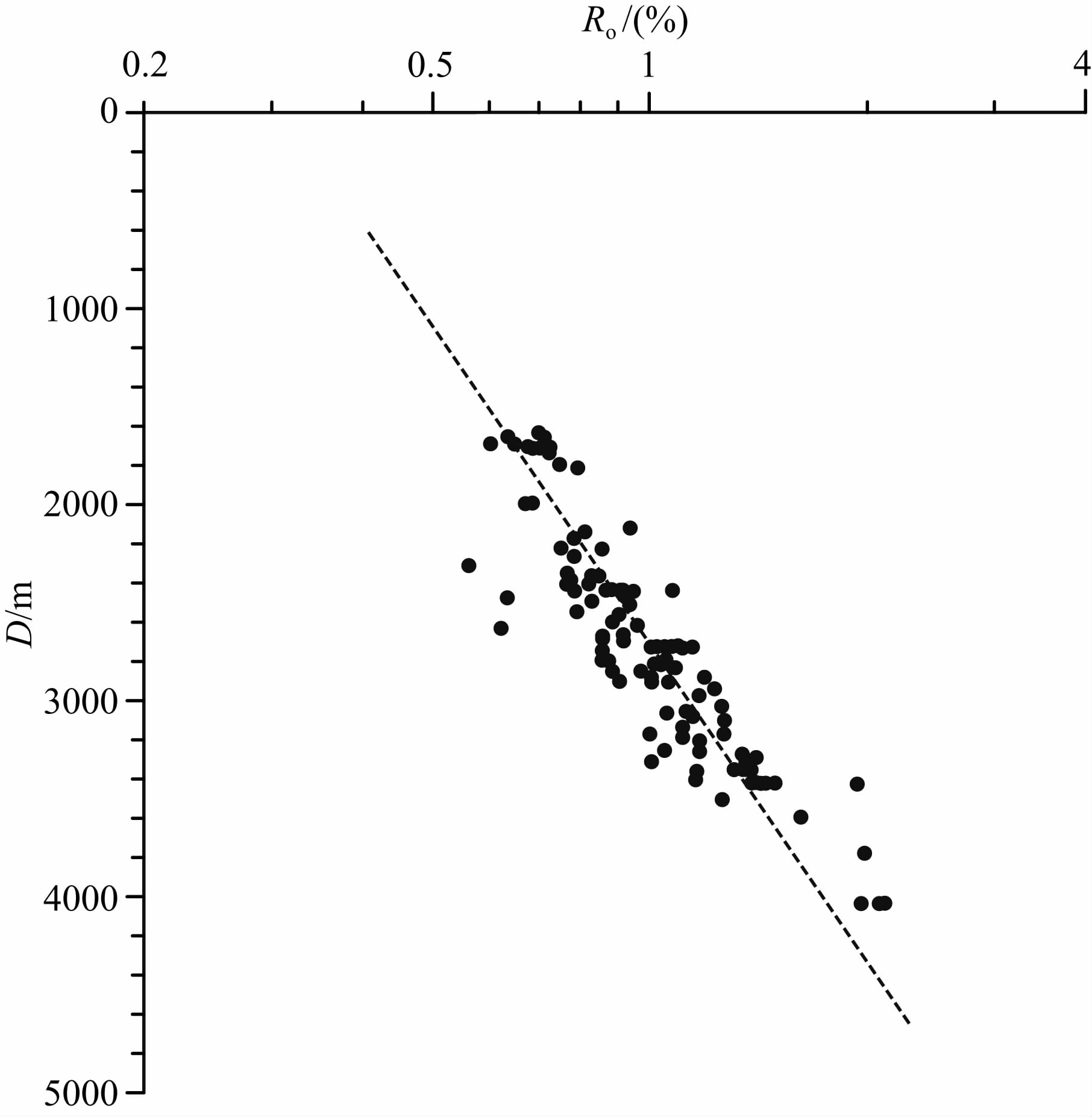 图 3 查干凹陷镜质体反射率与深度的关系图(镜质体反射率数据见表 2) Fig. 3 Vitrinite reflectance(Ro)data versus depth in the Chagan sag(Ro data shown in the Table 2) |