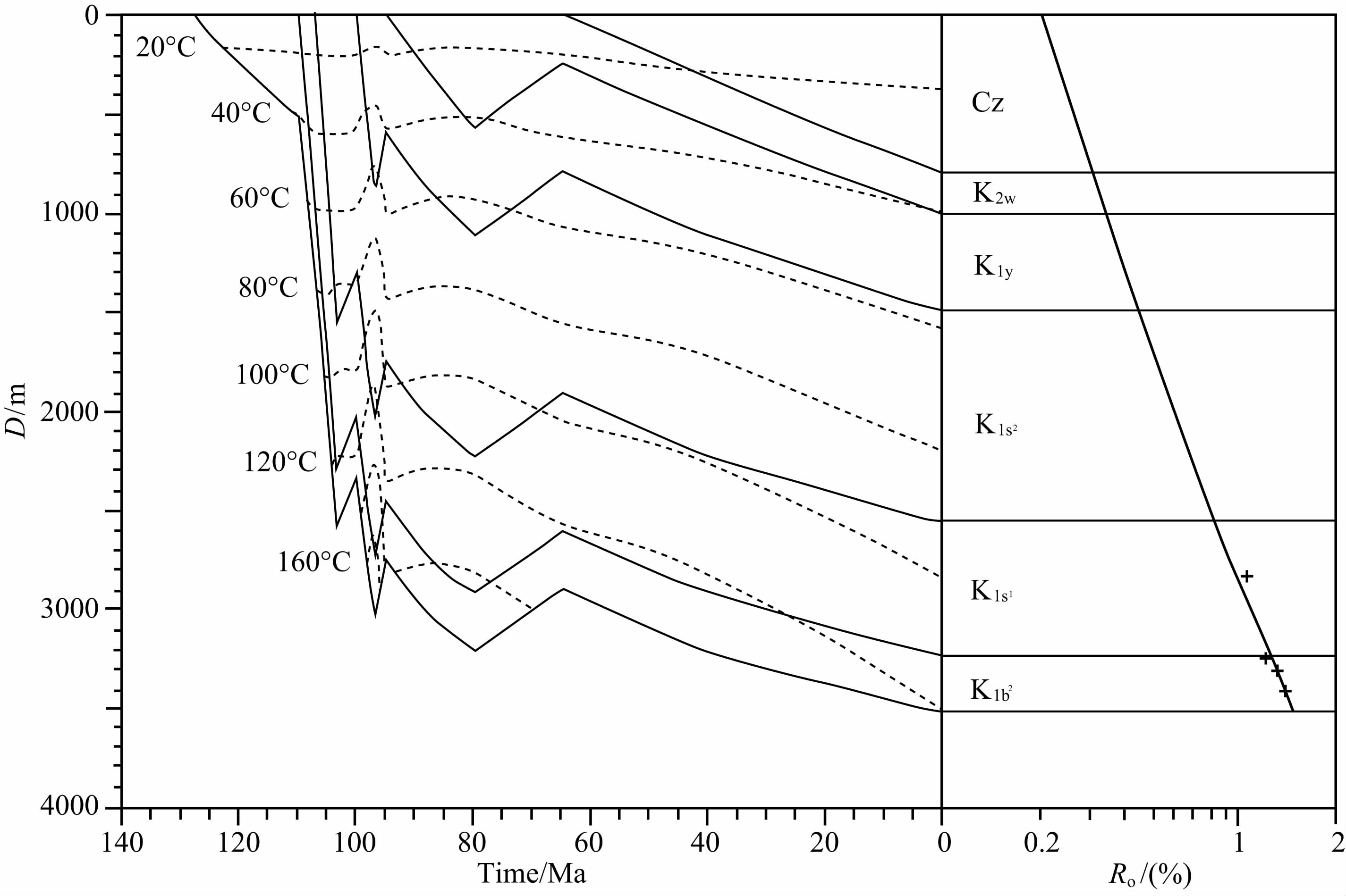 3.2 古温标及基本参数在热历史模拟计算中需要的参数包括古温标数据和基础地质数据.