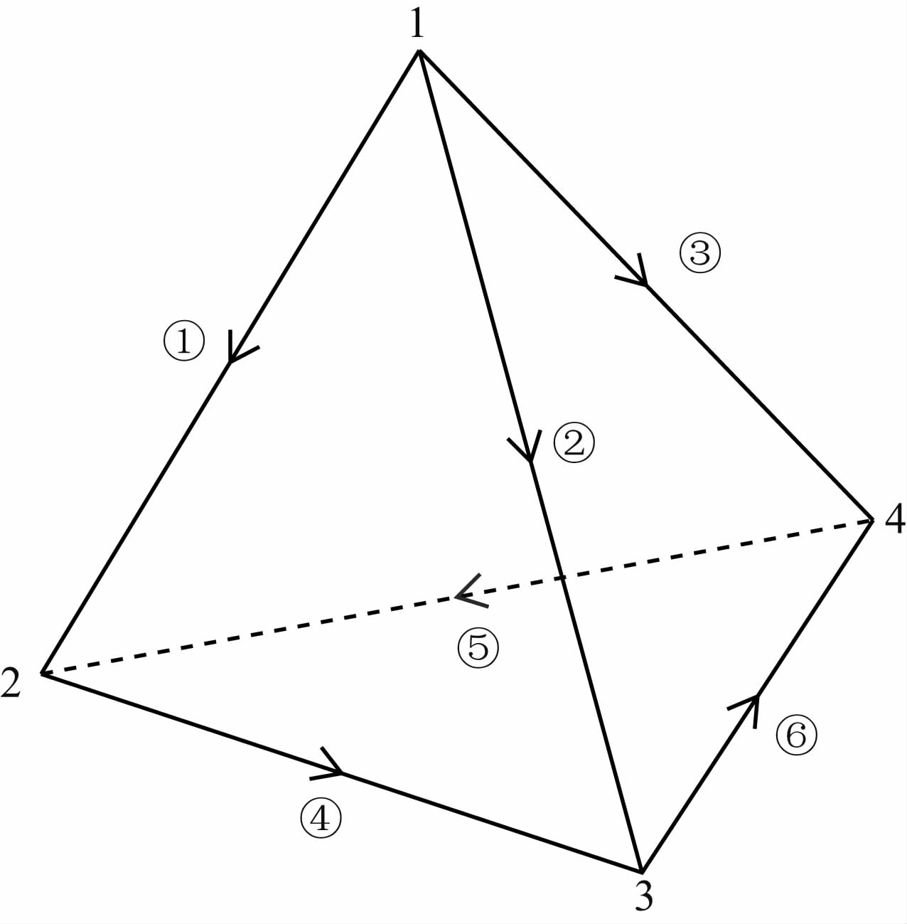 图 1 四面体单元中边的编号规则 Fig. 1 Edge definition for tetrahedral elements |