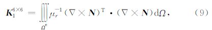 对Ni取散度,易得Δ ·Ni=0,即矢量有限元的形函数满足散度为零的条件.在每个离散的四面体单元中将插值函数(6)代入泛函(4),可得
