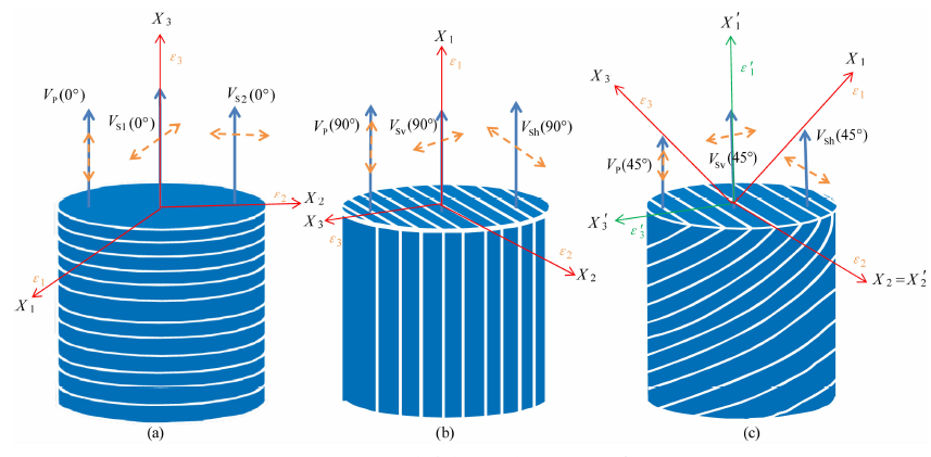 在三个岩芯角度为0°、45°和90°时最为简化,存在以下关系(Liu et al.,1994):