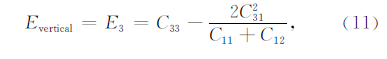 3.3 动态弹性模量特征分析对于VTI介质,水平分层的页岩,动态杨氏模量与刚度系数的关系为(Horsrud et al.,1998;Pervukhina et al.,2008)