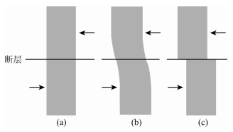 图 1 弹性回跳说示意图(Reid,1910; 江在森和武艳强,2012) (a) 无弹性应变积累;(b) 震前应变积累(断层锁闭);(c) 震时弹性应变释放. Fig. 1 Schematic illustration of elastic rebound hypothesis (Reid, 1910; Jiang and Wu, 2012) (a) Inelastic strain accumulation; (b) Strain accumulation (fault locking); (c) Elastic strain release. |