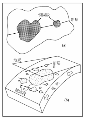 图 3 断层或板块俯冲带中锁固段示意图(据Toshihiro et al. (2003)和Ohnaka(2013)修改) Fig. 3 Schematic illustration of locked patches on faults or subduction zones (modified after Toshihiro et al.(2003) and Ohnaka(2013)) |