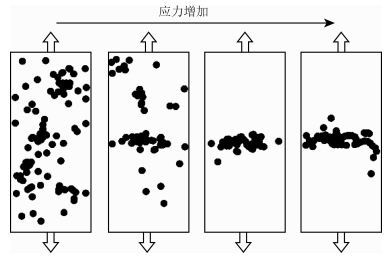 图 5 岩石变形过程中微破裂的空间分布(据Mogi(1985)修改) Fig. 5 Spatial distribution of micro failures during rock deformation (modified after Mogi(1985)) |