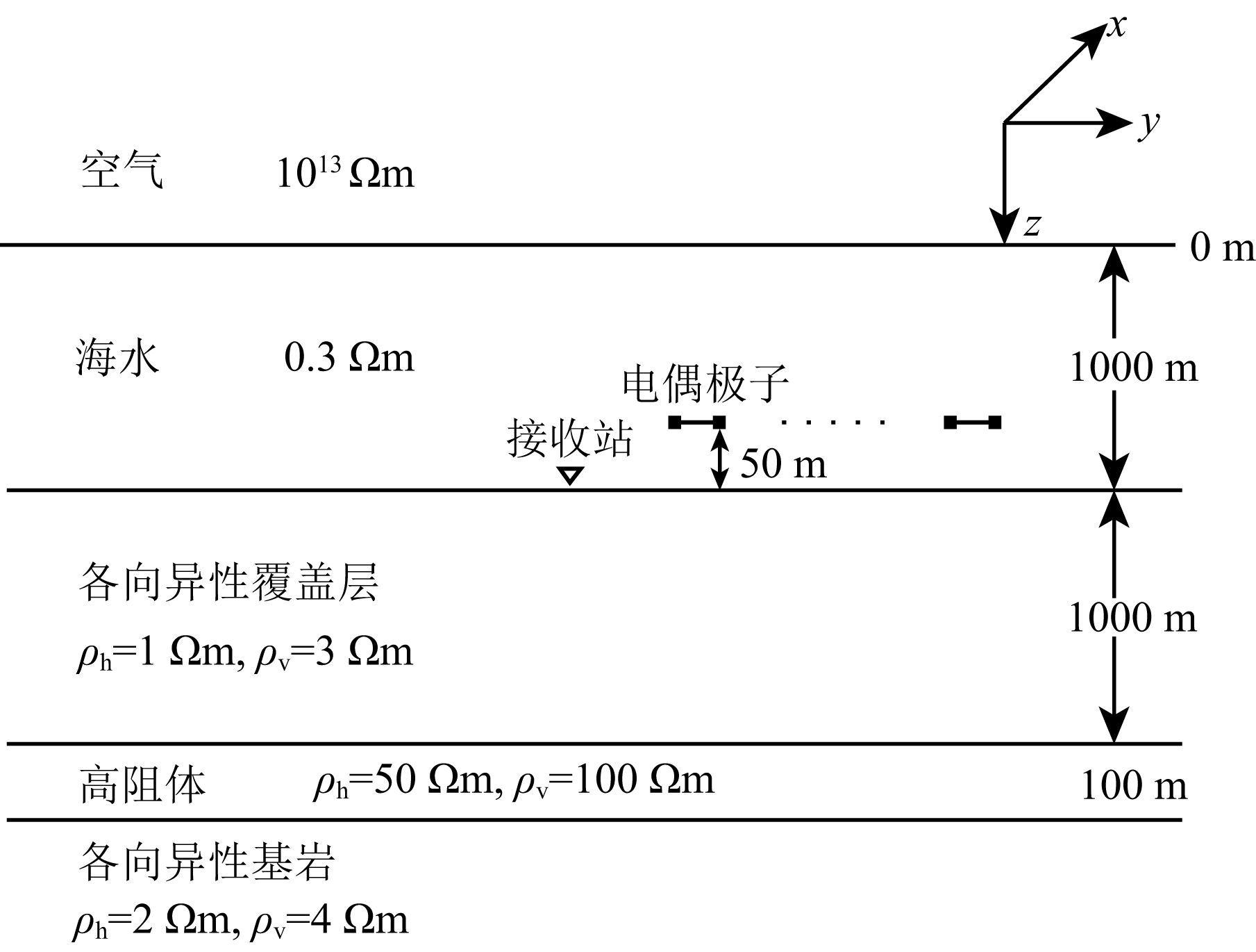 图 1 一维电阻率各向异性模型 Fig. 1 One-dimensional resistivity model with anisotropic surrounding sediments |
