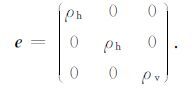 如果将电阻率张量 e 理解为反演模型横向电阻率 ρh 和垂向电阻率 ρv 的函数,即 e=f(ρh,ρv), 当地下介质呈现电阻率各向同性时, e=ρiso. 电阻率各向同性情形和电阻率各向异性情形下,雅各比矩阵有如下关系为