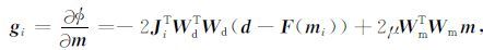 在高斯-牛顿迭代中,通过求取目标函数的极小值可以得到搜索方向,下一次迭代的模型参量mi+1可表示为