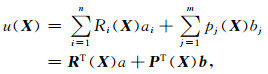 在求解域Ω内,任一节点XT=(x, y)的场变量u(X)的在局部支持域内的径向基点插值(Radial Point Interpolation Method, RPIM)表达式为