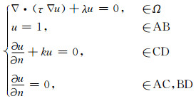 上边界AB为本质边界,设其场值为1个单位,为了加载本质边界,将系数矩阵K和右端项b分别修正为如下形式: