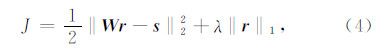 式中,‖ r ‖1 为L1范数约束项,λ为稀疏度控制参数.