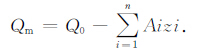 在生热率A采用分层阶状函数模型时,对应的大地热流的二元结构关系可以表示为: