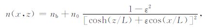 其中B0为电流片两侧无限远处的磁场,L为初始电流片半宽度,ε决定了初始磁岛的半宽度,即Zi/L=cosh-1(1+2ε),本次模拟中我们取ε=0.7,同时,我们还加了一个小扰动来使系统快速达到磁岛合并阶段. 模拟区域x方向为周期性边界条件,z方向为反射性边界条件.相应的密度分布为