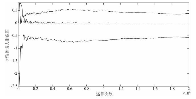 图 2 动力系统的李雅普诺夫指数计算图 Fig. 2 The Lyapunov spectrum of the reconstructed dynamical model |