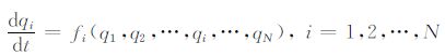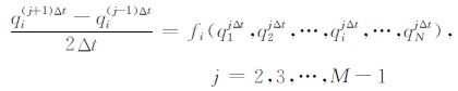 函数fi为q1,q2,…,qi,…,qN 的广义非线性函数,状态变量有N个,可以通过动力系统复杂性(计算其分维数来衡量)来确定.方程(1)的差分形式写为下式: