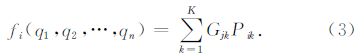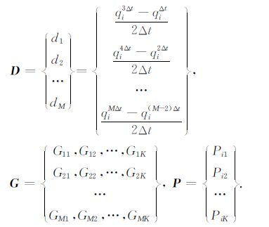 fi(q1jΔt,q2jΔt,…,qijΔt,…,qNjΔt)为未知非线性函数,设fi(q1jΔt,q2jΔt,…,qijΔt,…,qNjΔt)有Gjk个包含变量qi的函数展开项和对应的Pik个参数,(其中i=1,2,…,N,j=1,2,…M,k=1,2,…,K)可设为
