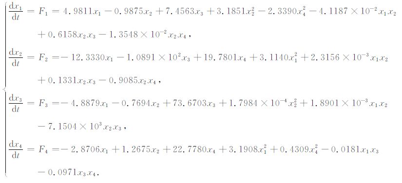 最终得到该样本时期描述副高脊线指数非线性动力预报模型方程组为