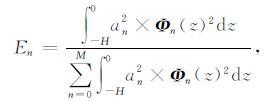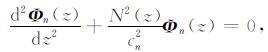 其中cn是模态 Φ n 的相速度,N2(z)是浮力频率.平底(d Φ n/dz=0)和刚盖(Φn=0)边界条件被用来求解该本征值问题(Kundu et al.,1975;Pedlosky,1987).